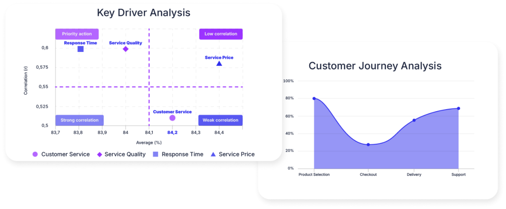 Comparative views: Segment results by region, channel, or journey stage to understand variations and drivers.
