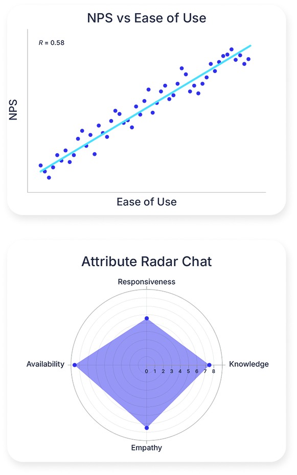 Attribute radar analysis: Visualize strengths and weaknesses across attributes or drivers in a single, comparative view.
